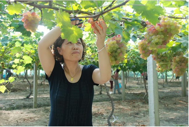 中小企業(yè)家們在葡萄種植大棚的簇擁下,留下了美麗身影