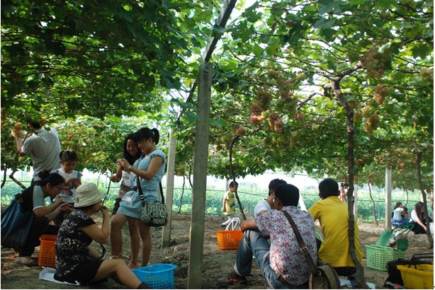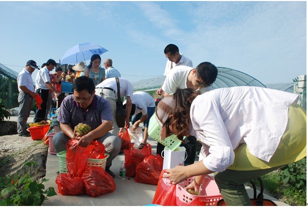 午宴之后,客戶與員工乘坐營銷體驗車和大巴來到仰徐農(nóng)業(yè)科技有限公司的葡萄園,收獲這次的豐收之旅。